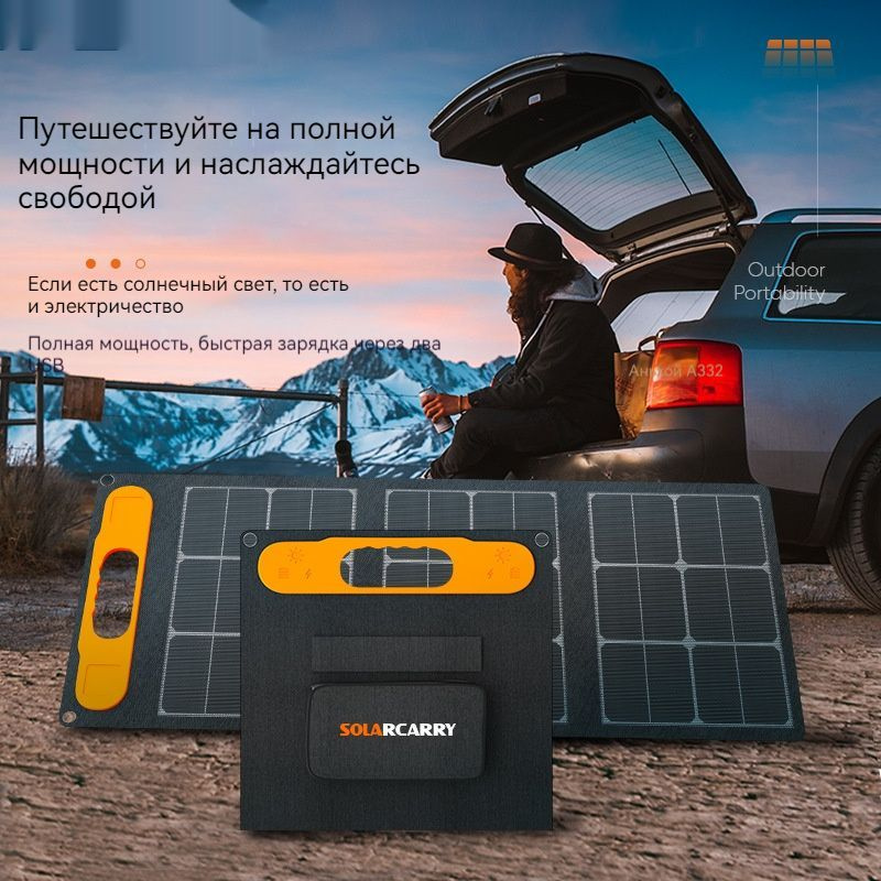 Портативная солнечная панель / батарея складная, чёрная, туристическая ...